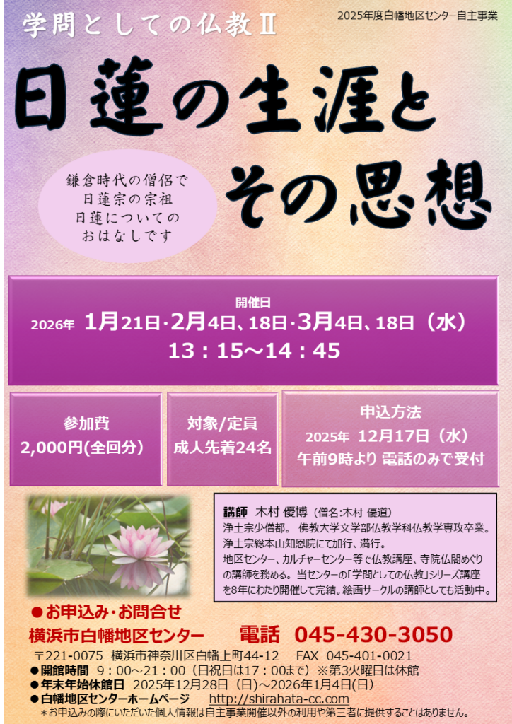 講座名 | 学問としての仏教Ⅱ「日蓮の生涯とその思想」 |