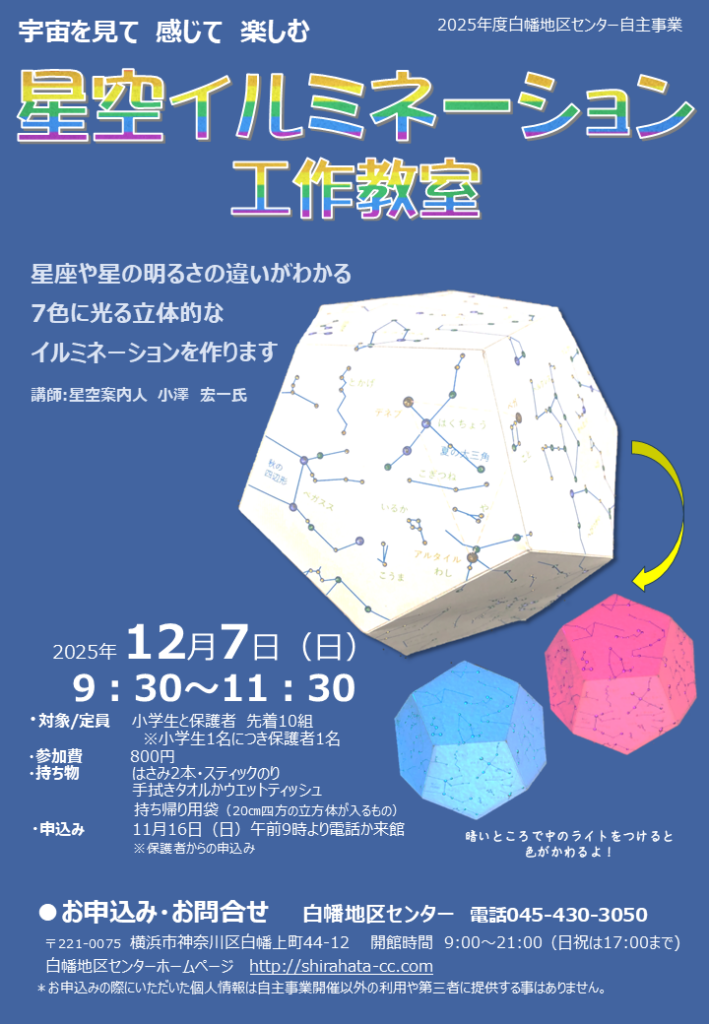 2025年11月16日(日)午前9時より電話か来館にて先着順受付をします。※保護者申込