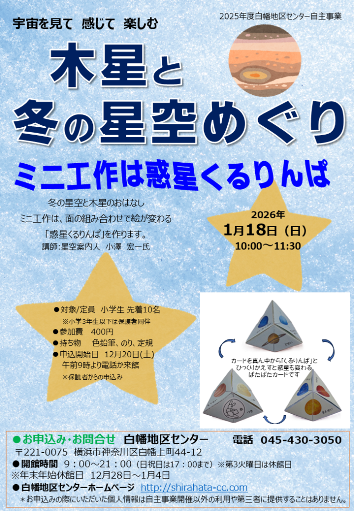 木星と冬の星空めぐり ~ミニ工作は惑星くるりんぱ~