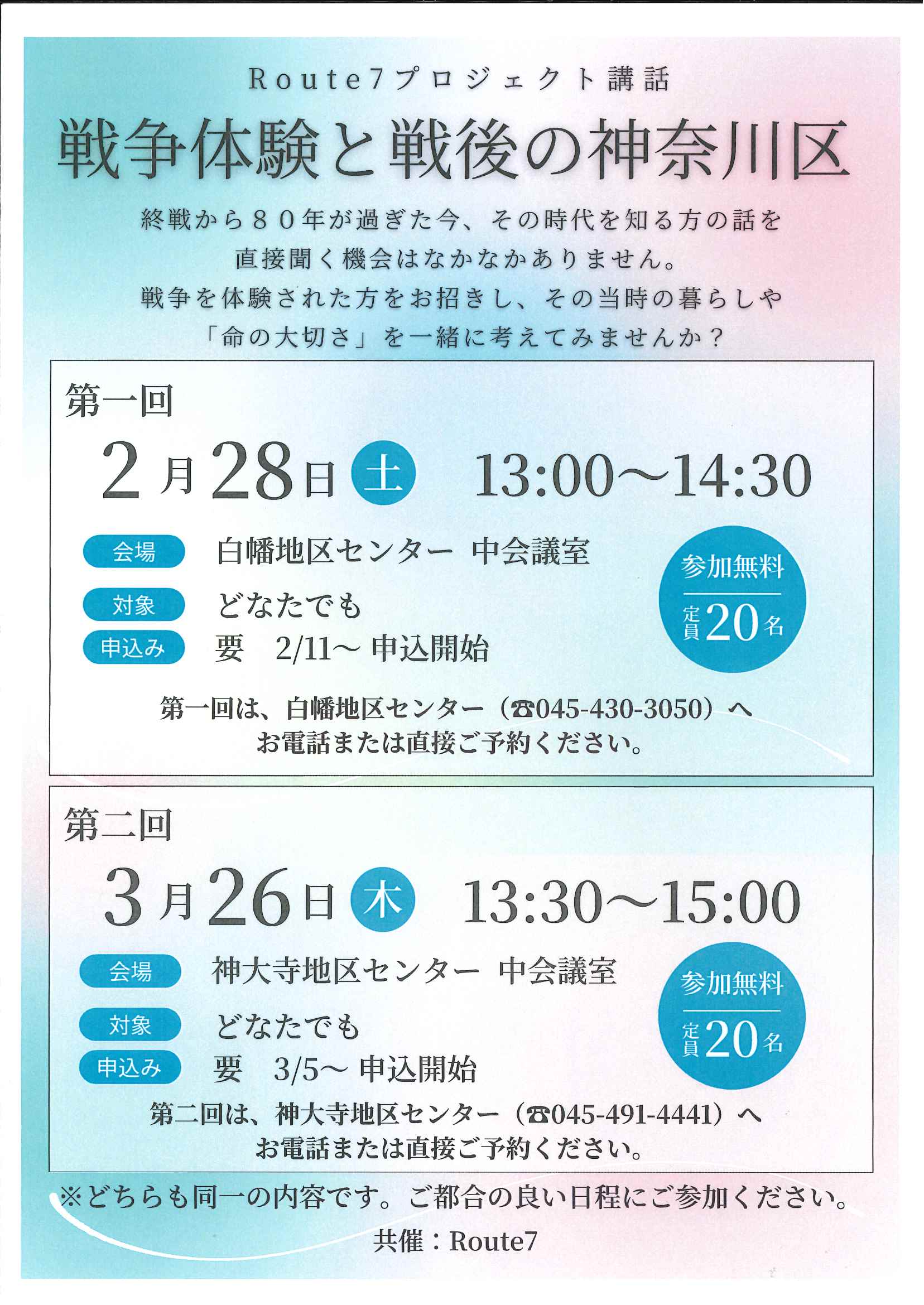 ルート7プロジェクト企画: 昔の神奈川区や近隣を知る方々による講話。